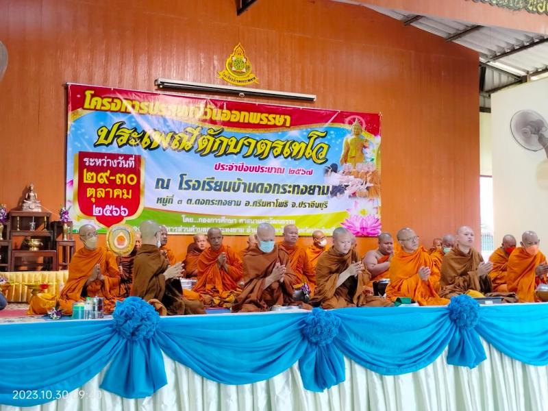 รายละเอียด : องค์การบริหารส่วนตำบลดงกระทงยาม จึงร่วมกับโรงเรียนบ้านดงกระทงยาม กำหนดจัดโครงการส่งเสริมวันออกพรรษา ประเพณีตักบาตรเทโวขึ้น โดยร่วมกับคณะกรรมการสถานศึกษาโรงเรียนบ้านดงกระทงยาม ผู้นำหมู่บ้าน หน่วยงาน องค์กรภาครัฐและเอกชน กลุ่ม ชมรมต่าง ๆ และประชาชนตำบลดงกระทงยามและตำบลหาดยาง ระหว่างวันที่ ๒๙ – ๓๐ ตุลาคม ๒๕๖๖ ณ หอประชุมโรงเรียนบ้านดงกระทงยาม หมู่ที่ ๓ ตำบลดงกระทงยาม อำเภอศรีมหาโพธิ จังหวัดปราจีนบุรี