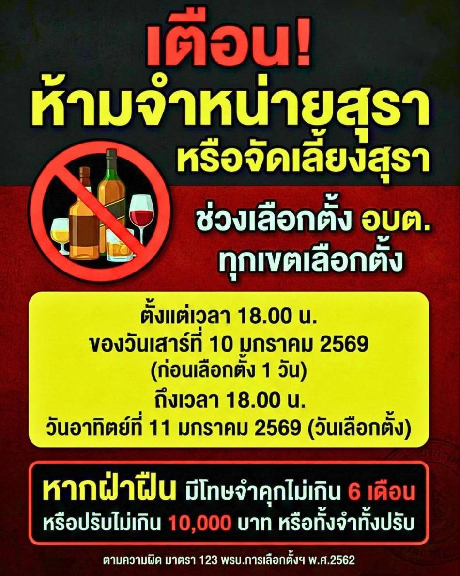 คำเตือน ห้ามจำหน่ายสุราหรือจัดเลี้ยงสุรา[8 มกราคม 2569]