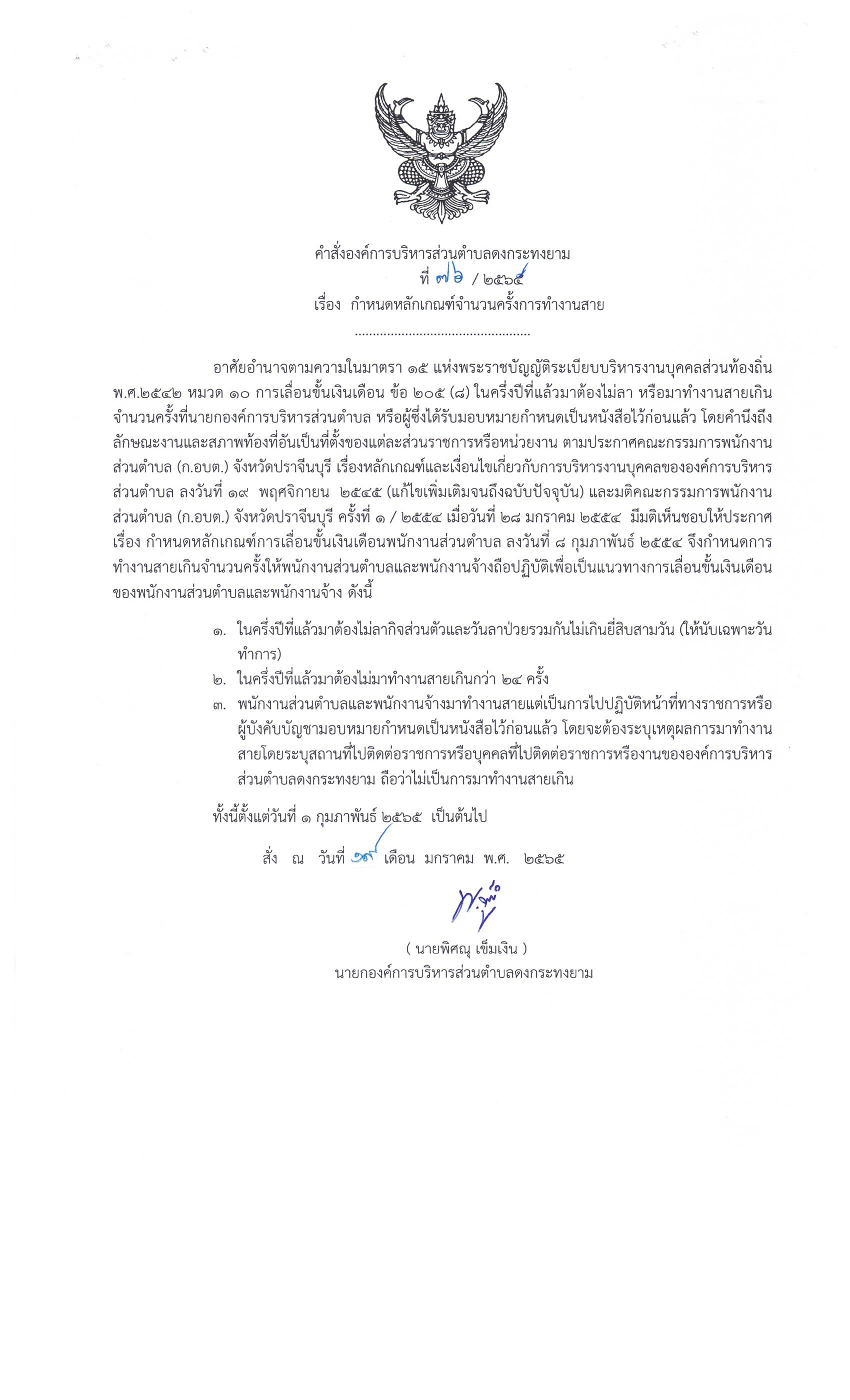 คำสั่ง ที่ 76/2565 เรื่อง กำหนดหลักเกณฑ์จำนวนครั้งการทำงานสาย