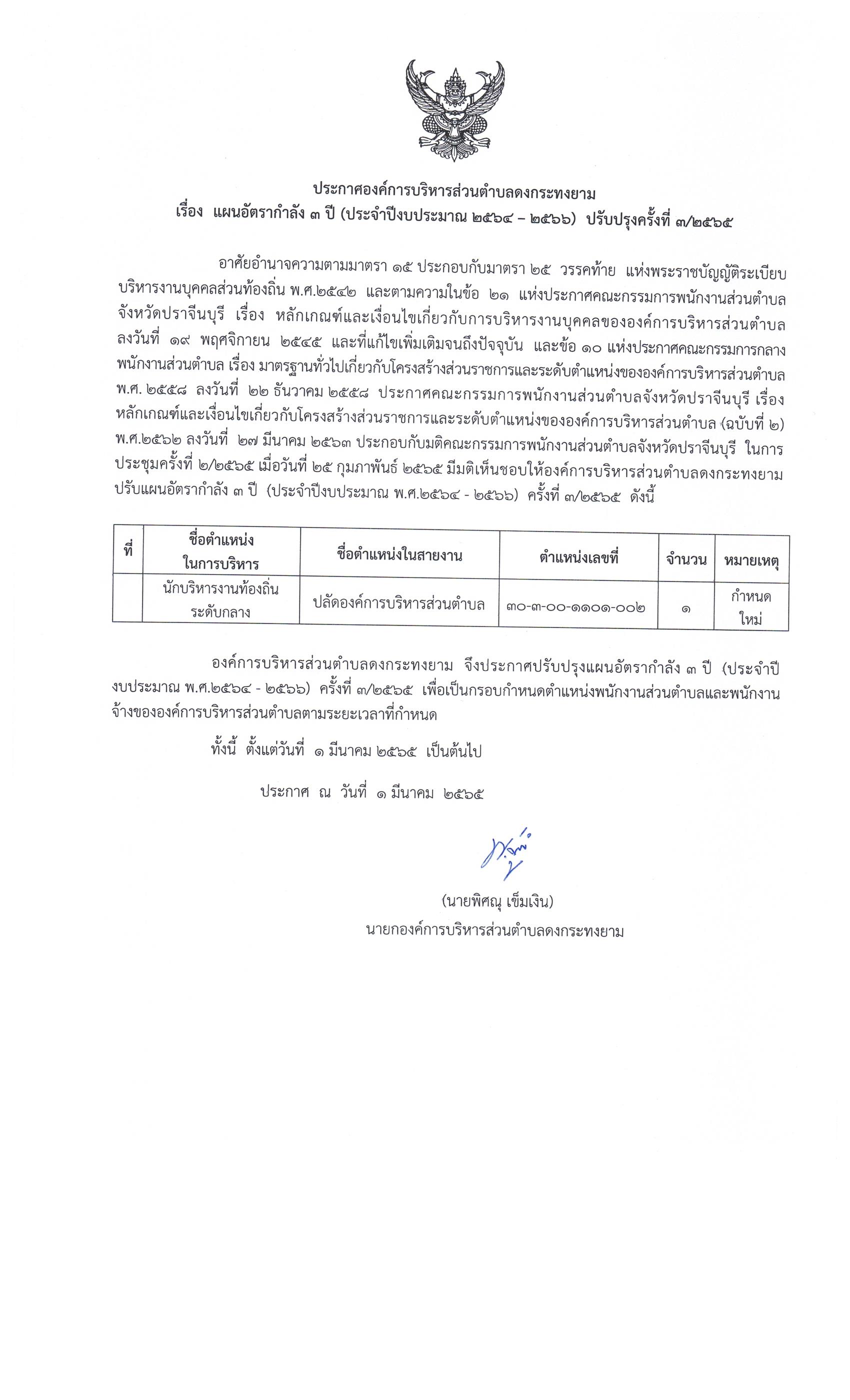 แผนอัตรตากำลัง 3 ปี (ประจำปีงบประมาณ 2564 - 2566) ปรับปรุงครั้งที่ 3/2565
